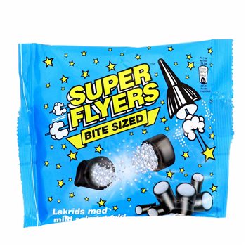 Geanta Super Flyers Bites de la Nestle conține popularul Super Flyers în mici mușcături doar pentru a -ți pop în gură. Barele mici se armonizează extrem de bine între sărat și dulce, cu o coajă de licorice ușoară și un conținut de zahăr crocant.