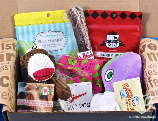 For our dog boxes, we've included items such as chew toys, tasty biscuits, and grooming tools that cater to dogs of all sizes. For our cat boxes, expect to find enticing catnip toys, delicious treats, and grooming accessories that will keep your feline friend purring with delight.