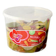 En este cubo obtienes muchos dulces por el dinero. Red Band Megamix contiene 1.3 kg de gomitas de vino en forma de llaves, monedas, pies y emoticonos. Cuando hayas mordisqueado una pieza, puedes cerrar el cubo nuevamente, para que los lamidos conserven su sabor.