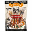 Los palitos de masticación de 3 pulgadas del mejor amigo son pequeños y sabrosos palitos de masticación hechos de carne de res y piel de cerdo envuelta con delicioso filete de pollo. Las deliciosas barras son adecuadas como palitos de masticación para perros pequeños y medianos y como un refrigerio para perros más grandes. La bolsa contiene 20 pcs.