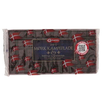 Giant Bar in Dark Chocolate är en välkänd chokladstång från Carletti. Choklad med de många flingorna är bra för smältning om du behöver använda smält eller hackad choklad för bakverk, desserter eller frukt. Carletti -jättplattan kan också ätas av sig själv utan tillbehör, om du t.ex. Ha en söt tand för mörk choklad.