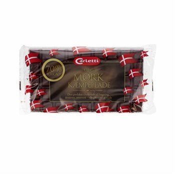 Om du vill ha en riktigt rik mörk choklad för bakning, efterrätt och matlagning eller bara för att äta som den är, hittar du den här i Carletti Dark Giant Bar med ett kakaoinnehåll på 70%. Innehållet i paketet: 170 gram.